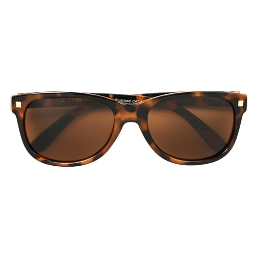 • Polarized Women’s Sunglasses: These trendy sunglasses for women boast brown polarized lenses designed to reduce glare and reflected light for superior visual clarity and definition