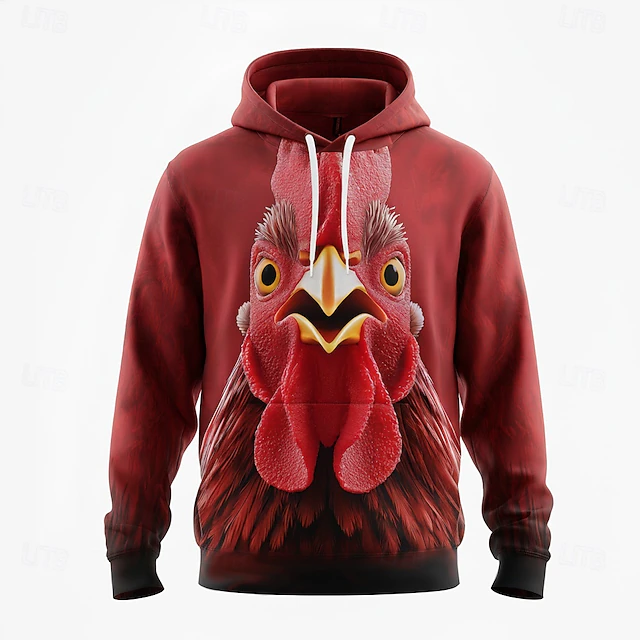More information about Men's Optical Illusion Rooster Hoodie Sweatshirt Fashion Cool Crew Neck Home Party Streetwear White Red Drawstring Fall Winter Designer