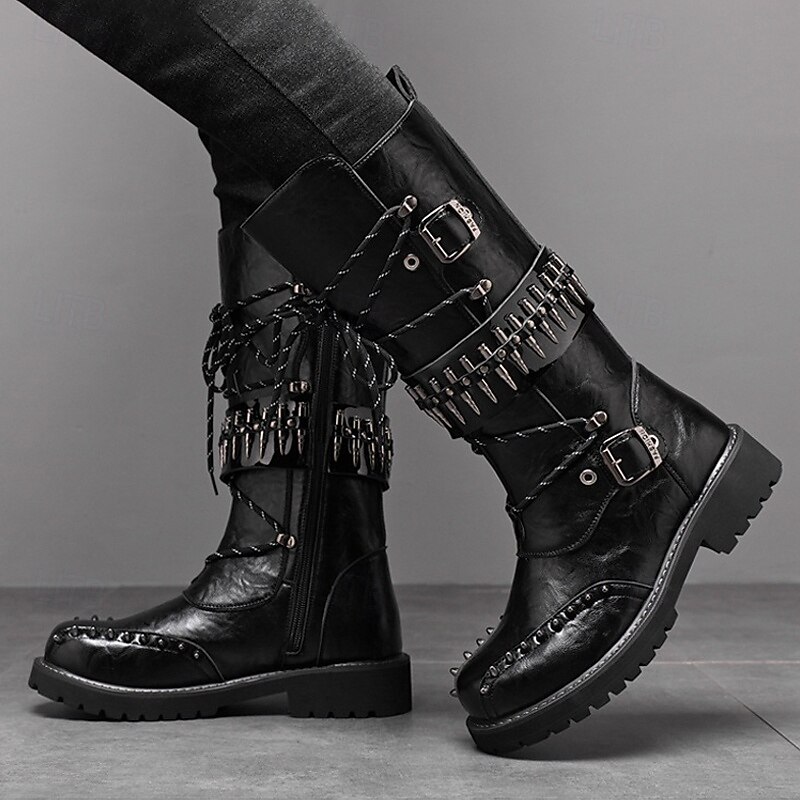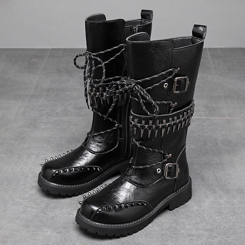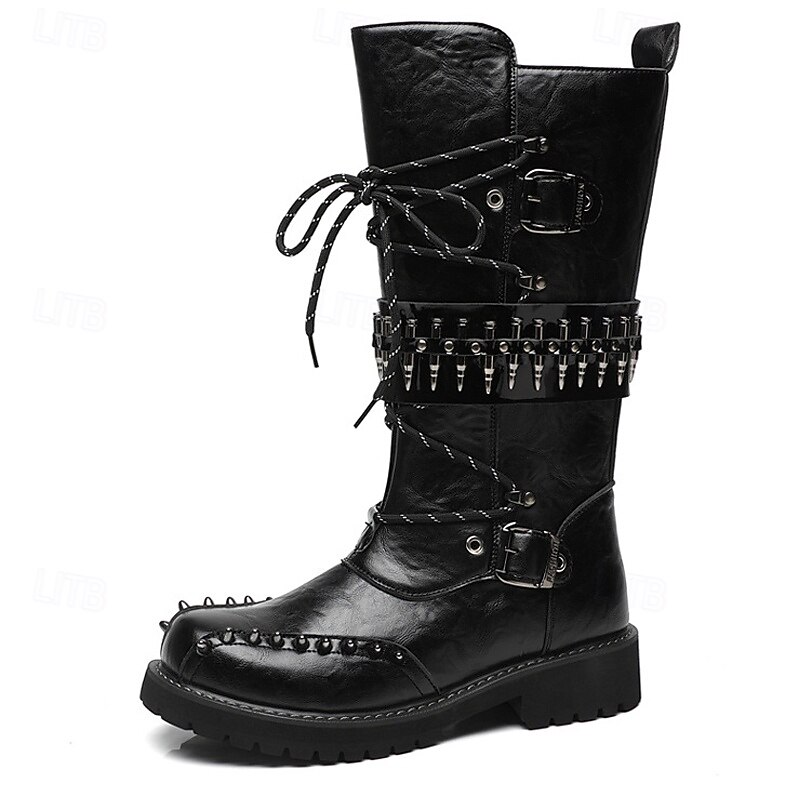$79.99 - Men's Punk Gothic Combat Boots – Black Lace-Up Mid-Calf Boots with Buckle Straps, Spiked Studs, and Heavy Duty Sole for Halloween, Cosplay and Nightlife Parties 2025. Shop for cheap Shoes For Men online? Buy at lightinthebox.com on sale today!