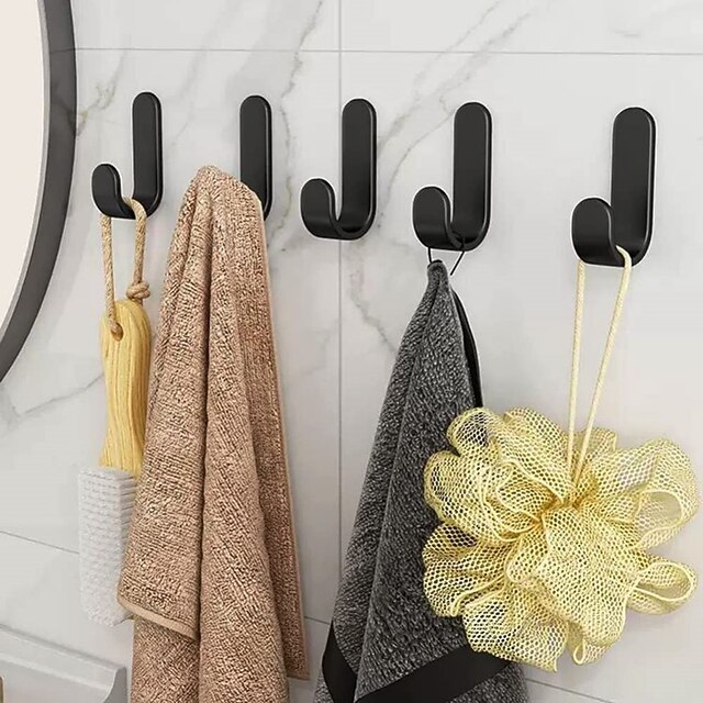 HOT ! 5pcs Self Adhesive Wall Hooks Stainless Steel Towel Hooks No Drilling Wardrobe Hook Self Adhesive Wall Hooks for Hanging Towels, Keys J-Shaped Hook