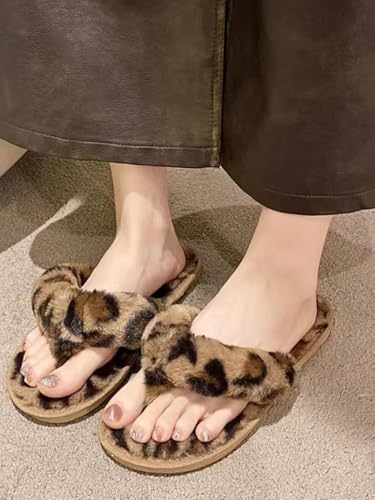 Fuzzy Flip Flops Fluffy Winter Slippers Cozy Comfy Memory Foam Open Toe House Slippers Soft Faux Fur Plush Slides Anti-Skid Indoor Outdoor Home Bedroom Shoes for Women 7