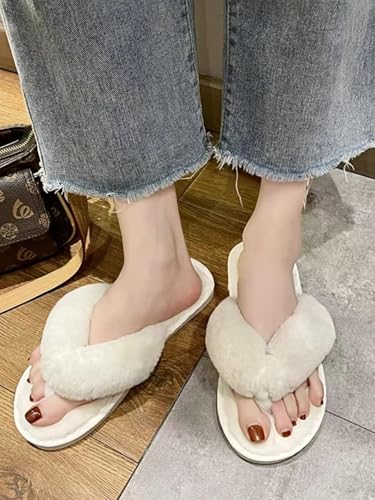 Fuzzy Flip Flops Fluffy Winter Slippers Cozy Comfy Memory Foam Open Toe House Slippers Soft Faux Fur Plush Slides Anti-Skid Indoor Outdoor Home Bedroom Shoes for Women 6
