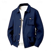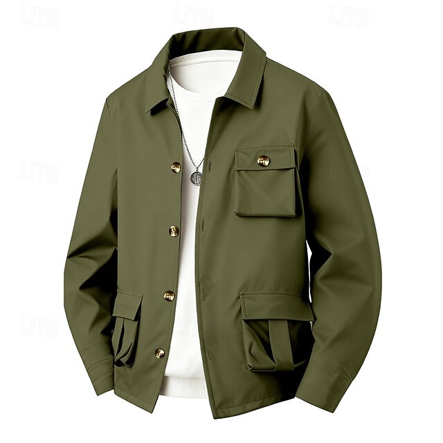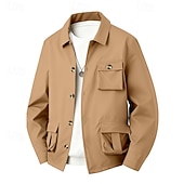 More information about Men's Lightweight Jacket Cargo Jacket Casual Jacket Vacation Daily Waterproof Pocket Spring Fall Plain Fashion Classic Lapel Regular Black Navy Blue Khaki Army Green Gray Jacket