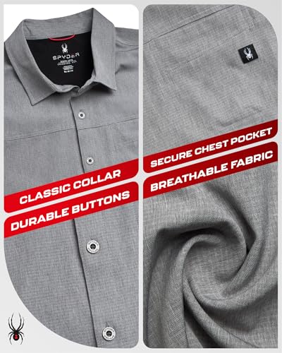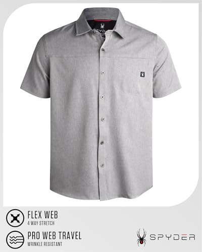 HOT ! Spyder Mens Button Down Short Sleeve Shirt - Wrinkle Free Dress Shirts Collared Casual Button Up Mens Work Shirt with Pocket