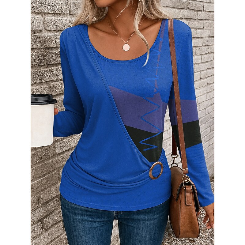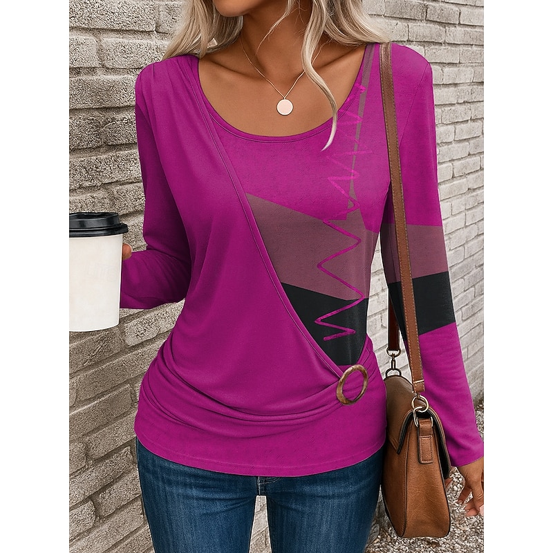 HOT ! Women's T Shirt Graphic Geometric Vintage Stylish Casual Long Sleeve Crew Neck Regular Tops Daily Patchwork Print Yellow Red Blue Dusty Blue Purple Fall Winter