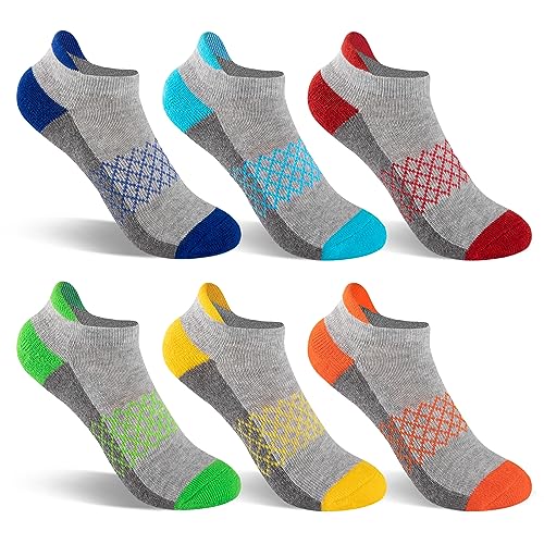 Comfoex Boys Socks 6 Pairs Ankle Athletic Sock Half Cushioned Low Cut Socks For Little Big Kids 7