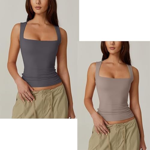 Tank Top-Women's Summer Sleeveless Square Neck Tank Top,Camisole Tops -Women's Square Neck Double Lined Tank Tops 2