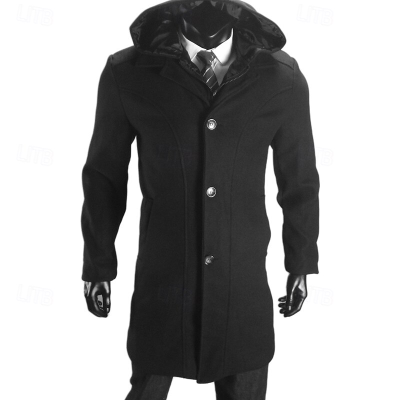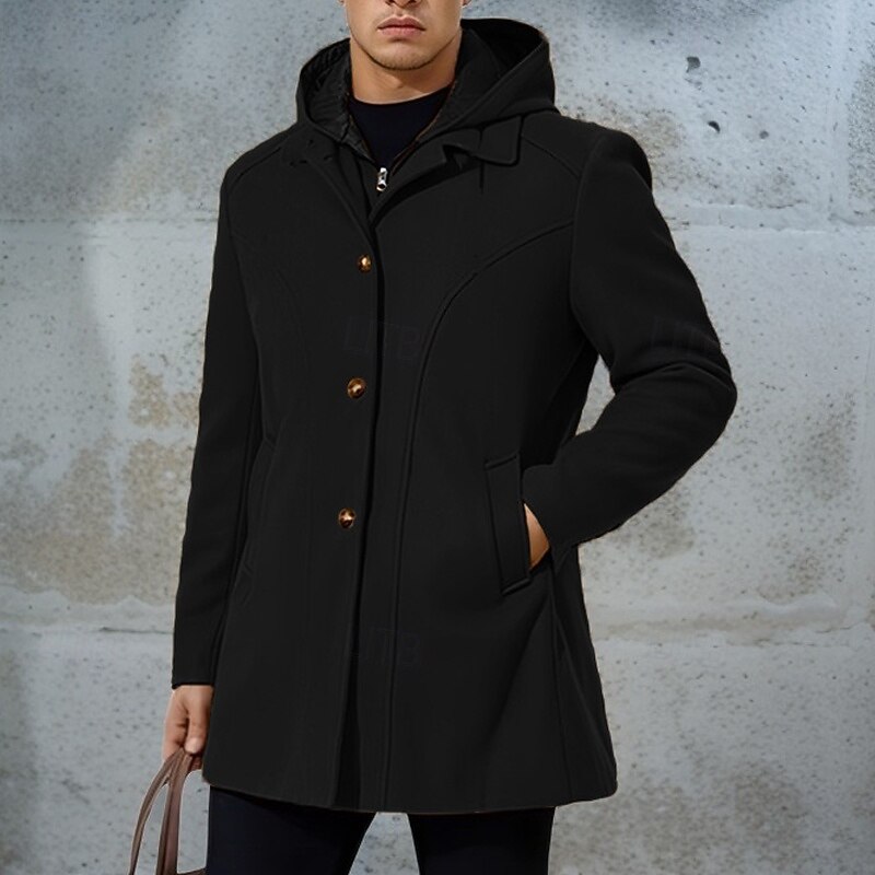 More information about Men's Peacoat Trench Coat Vacation Daily Fall Winter Polyester Windproof Outerwear Clothing Apparel Fashion Classic Plain Pocket Hooded Zipper
