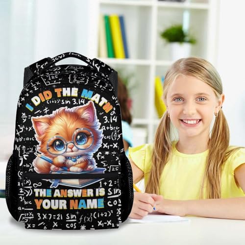 Custom Toddler Cat Backpack for Kids - 17 Inch Large Capacity Cute Math Backpacks - Toddler School Bookbag for Boys
