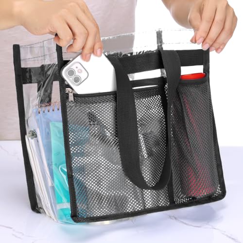 • RELIABLE QUALITY - Each clear bag with handles is made from waterproof, and tear-resistant PVC material. This clear tote bag uses reinforced fabric seams to make sure your items stay perfectly, can be used for a long time.