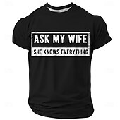 More information about Men's Funny Graphic T-Shirt: 'Ask My Wife She Knows Everything' Husband Humor