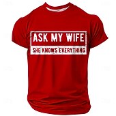 HOT ! Men's Funny Graphic T-Shirt: 'Ask My Wife She Knows Everything' Husband Humor