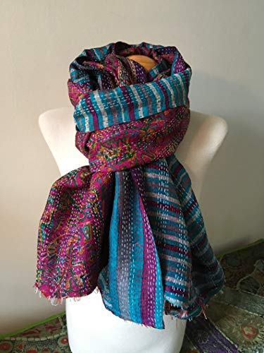 Indian Sari Reversible Kantha Scarf, Colorful Scarf - Assorted Colors Gorgeous Looks 1