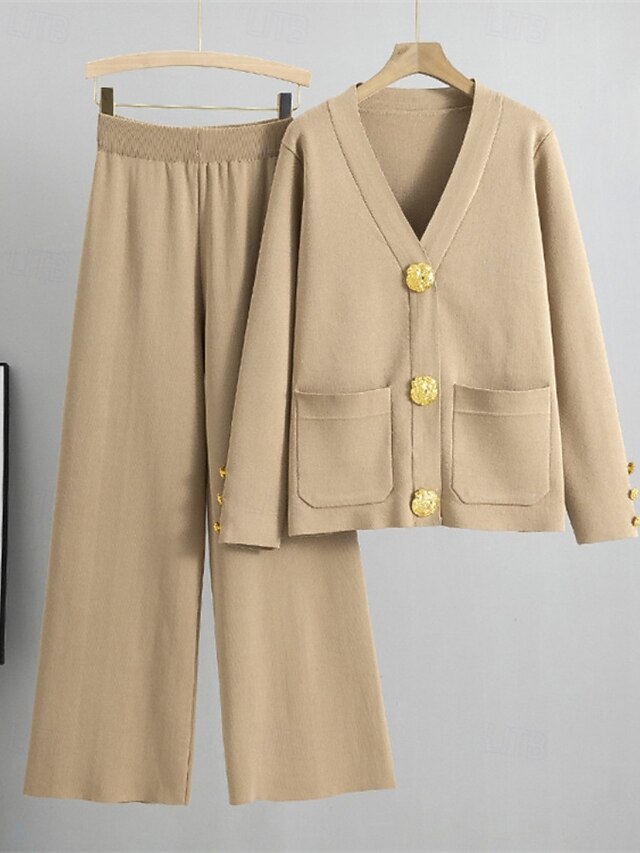 Women's Sweater Cardigan Sweater Co-ords Streetwear Casual Solid Color V Neck Pocket Buttons Knitted Long Sleeve Regular Tops Knit Daily Holiday Going out Wine Red Black Fall Winter 21