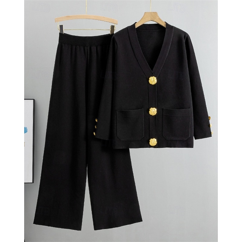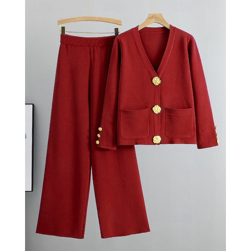 More information about Women's Sweater Cardigan Sweater Co-ords Streetwear Casual Solid Color V Neck Pocket Buttons Knitted Long Sleeve Regular Tops Knit Daily Holiday Going out Wine Red Black Fall Winter