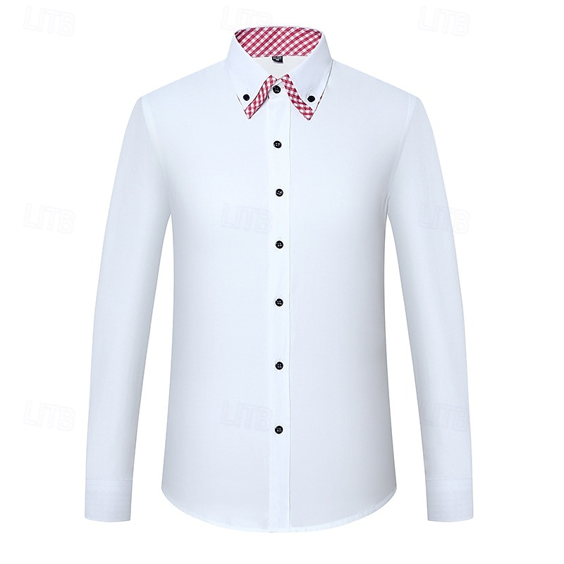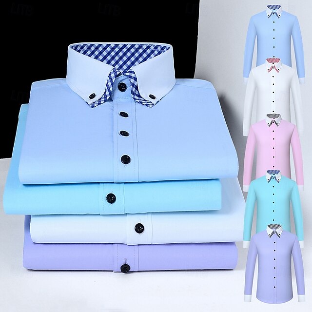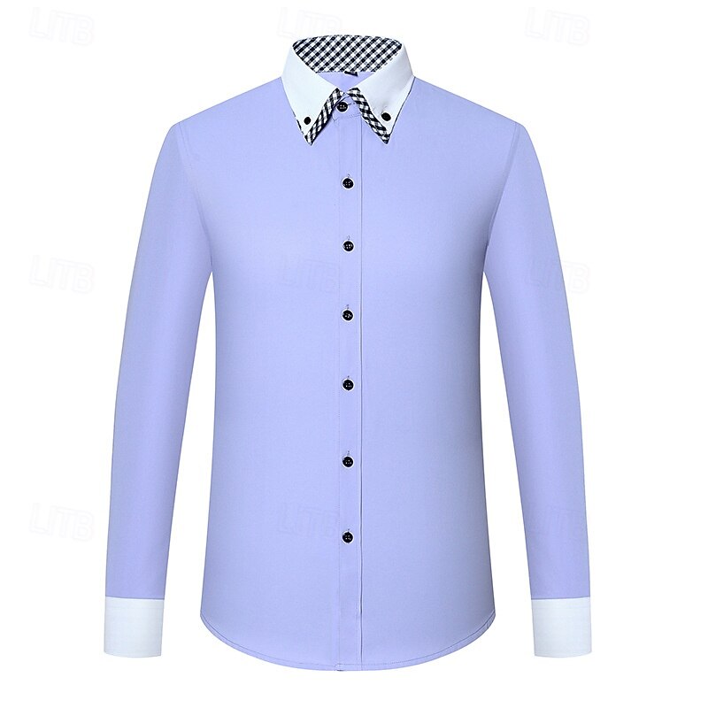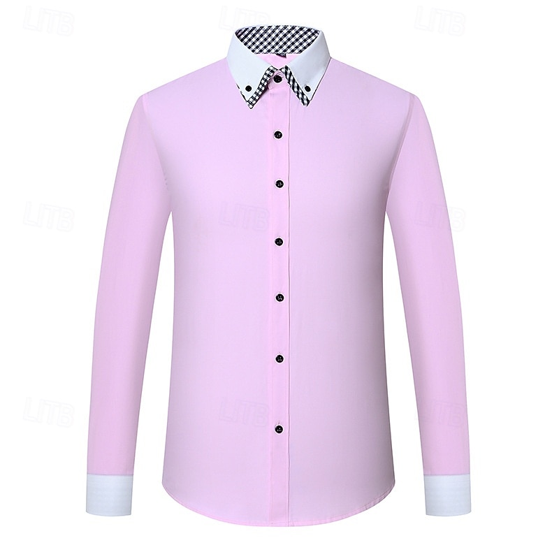 Men's Shirt Dress Shirt Button Up Shirt Plain Wedding Party White Pink Blue Light Purple Long Sleeve Lapel Spring Fall Clothing Apparel Pocket 12