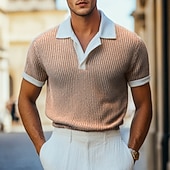 More information about Men's Golf Shirt Waffle Knit Polo Shirt Business Casual Ribbed Polo Collar Short Sleeve Fashion Solid Color Buttons Knitted Summer Spring Fall Regular Fit Light Blue Burgundy Khaki Grey Golf Shirt