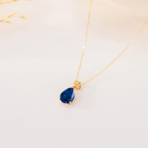14k Gold Pear Gemstone Birthstone Necklace with Real Diamond(I2-I3 Clarity),2 Carat Teardrop Created Birthstone Anniversary Birthday Mother's Day Necklaces for Women Mom Her 5
