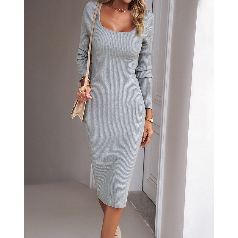 Women's Midi Dress Sweater Dress Bodycon Sheath Dress Fashion Modern Daily Holiday Weekend Regular Fit Plain Long Sleeve Square Neck Black Blue Green Apricot Spring Fall 11