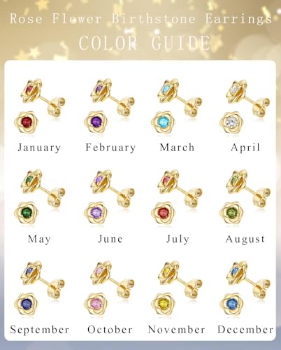 14K Gold Plated 925 Sterling Silver Post Rose Flower Stud Earrings for Women Birthstone Cubic Zirconia Studs Earrings Hypoallergenic & Nickel Free Jewelry 5