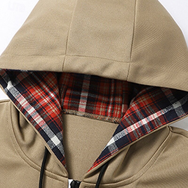 More information about Men's Hoodie Full Zip Hoodie Wine Red Black Brown Khaki Light Grey Hooded Plain Patchwork Sports & Outdoor Casual Daily Streetwear Cool Sportswear Spring & Fall Clothing Apparel Hoodies Sweatshirts