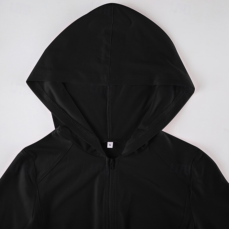 Women's Texture Blouse Wrap Crop Top Tight Tops Plain Daily Stylish Basic Long Sleeve Hooded Regular Tops Work Daily Holiday Zipper Black Pink Spring Fall 10