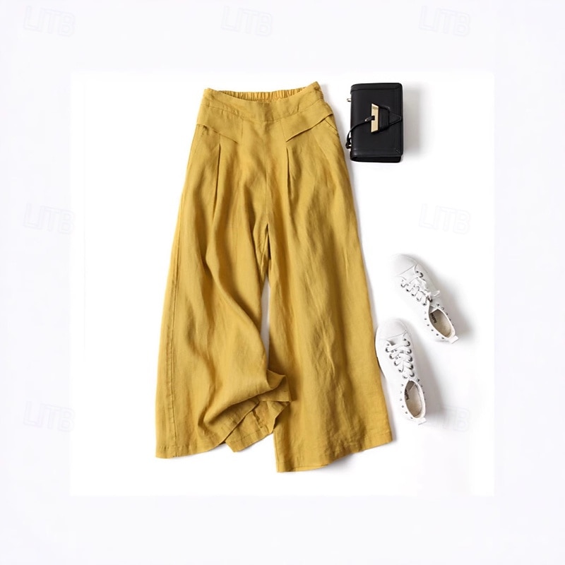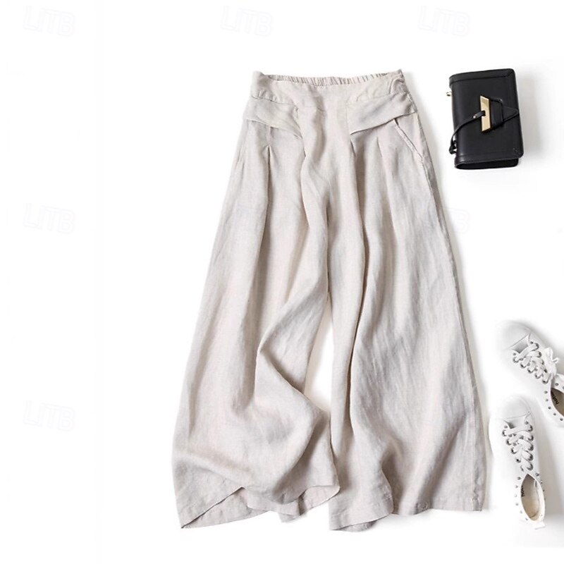 Women's Cotton Linen Pants Slacks Streetwear Casual Full Length Natural Plain Pocket Elastic Waist Comfy Outdoor Comfortable Street Daily Wear Orange red Depression Green Black White Summer Regular 10