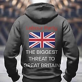 Men's Flag UK Backprint Hoodie Sweatshirt Sports Fashion Crew Neck Outdoor Office Streetwear Black Red Drawstring 3D Fall Winter Designer 11