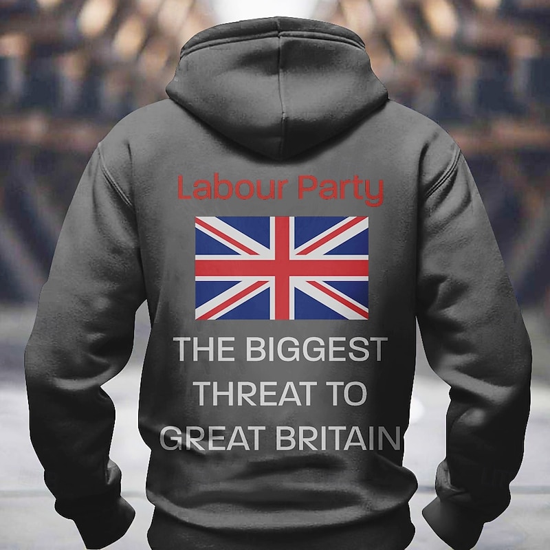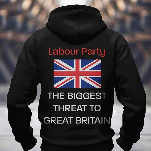 Men's Flag UK Backprint Hoodie Sweatshirt Sports Fashion Crew Neck Outdoor Office Streetwear Black Red Drawstring 3D Fall Winter Designer 1