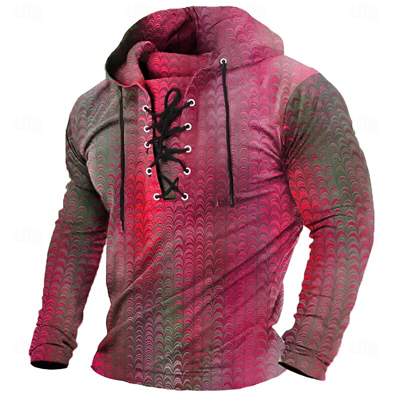 Men's Abstract 3D Stylish Ethnic Long Sleeve Hooded Streetwear Yellow Red Drawstring Fall Winter Designer 3