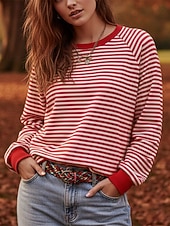 More information about Women's Pullover Sweatshirts Striped Fashion Streetwear Classic Long Sleeve Crew Neck Round Neck Regular Tops Dailywear Casual Print Red Spring Fall