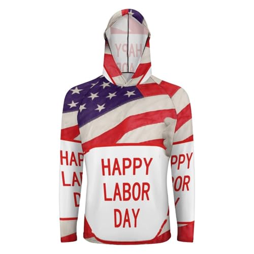 Men's Sun Shirts UPF 50+ Rash Guard Long Sleeve Sun Protection Hoodie Happy Labor Day Lightweight Shirt M White 6