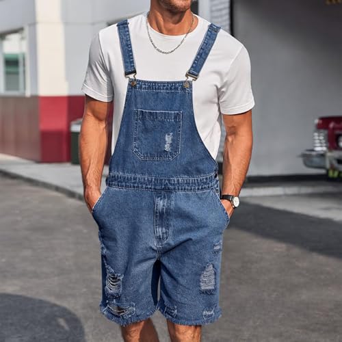HOT ! Cambkatl Men's Short Overalls Vintage Washed Denim Bib Shorts Adjustable Strap Coveralls Jeans Jumpsuit Shorts with Pockets