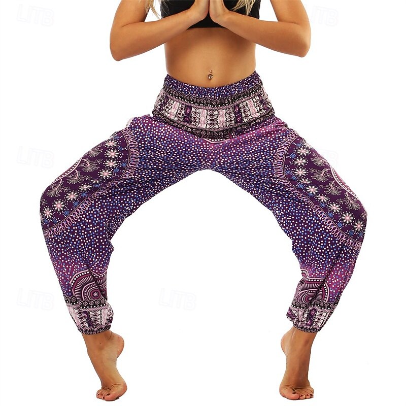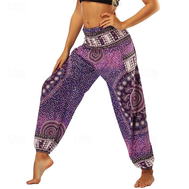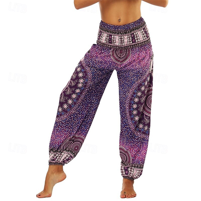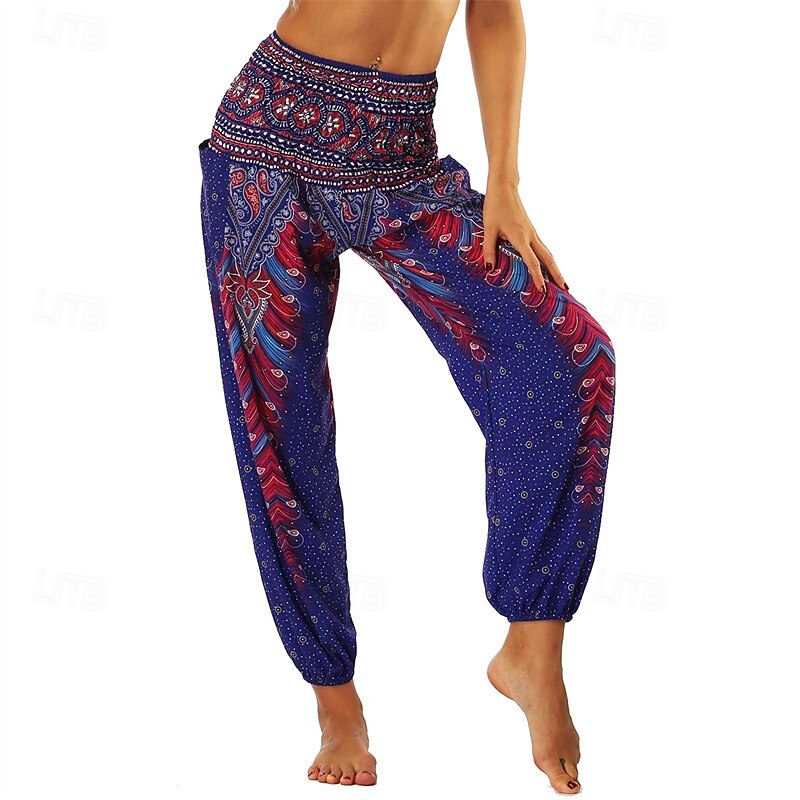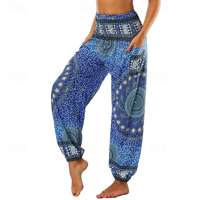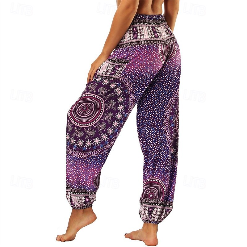 Retro Vintage Boho 1970s Harem pants Yoga Pants Hippie Smocked Waist Mandala Tribal Fancy Dress Women's Halloween Carnival Beach Vacation Wear Retro Theme Party Festival Adults' Pants 30