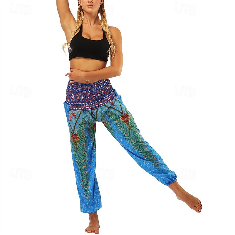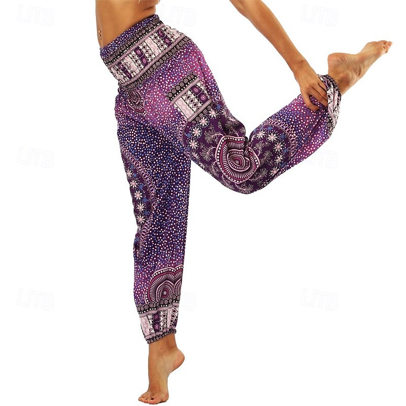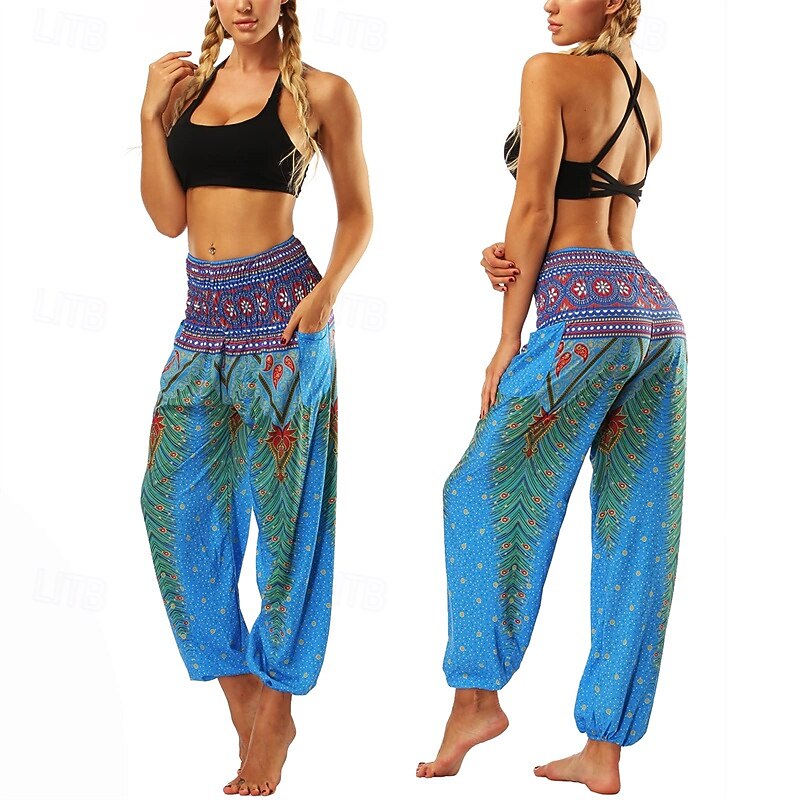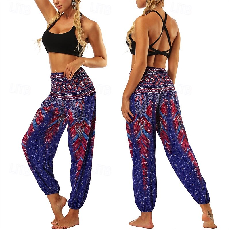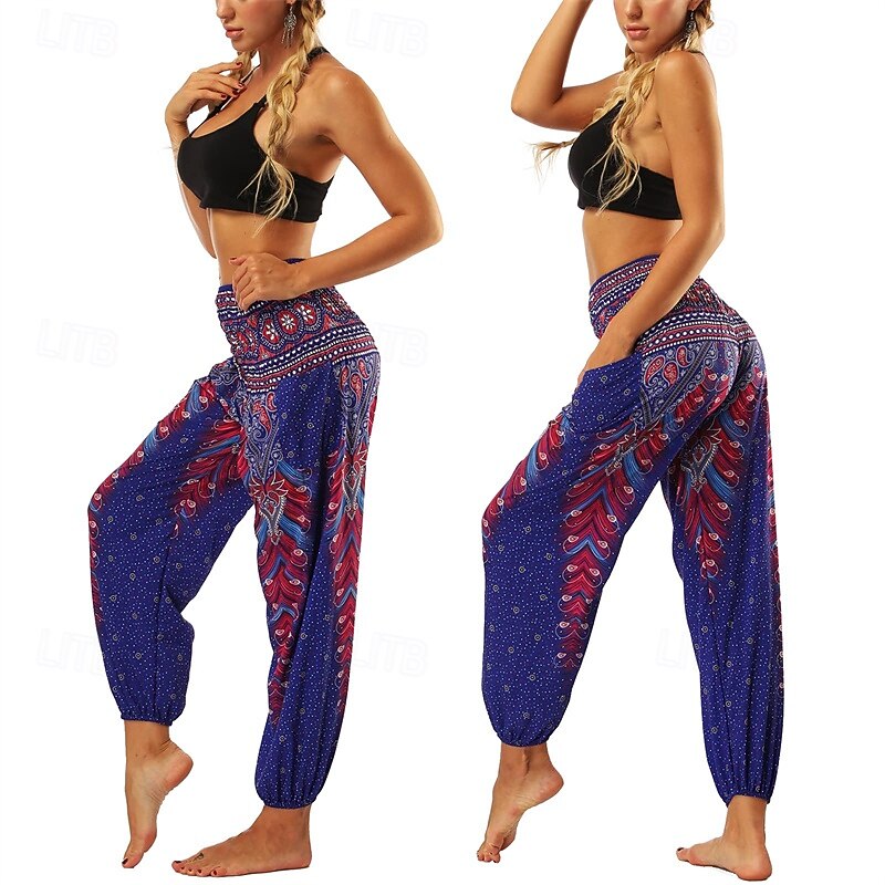 Retro Vintage Boho 1970s Harem pants Yoga Pants Hippie Smocked Waist Mandala Tribal Fancy Dress Women's Halloween Carnival Beach Vacation Wear Retro Theme Party Festival Adults' Pants 30