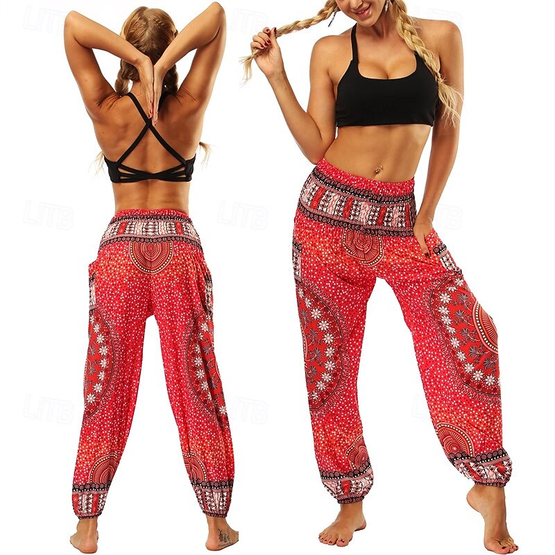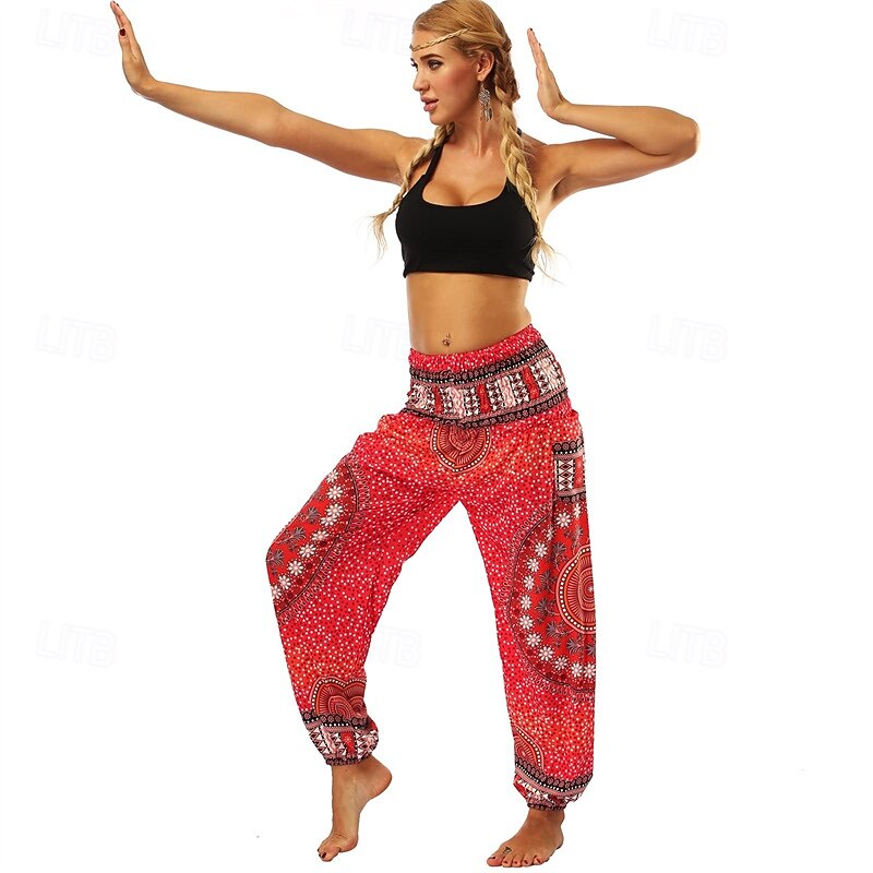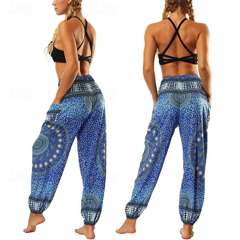 HOT ! Retro Vintage Boho 1970s Harem pants Yoga Pants Hippie Smocked Waist Mandala Tribal Fancy Dress Women's Halloween Carnival Beach Vacation Wear Retro Theme Party Festival Adults' Pants
