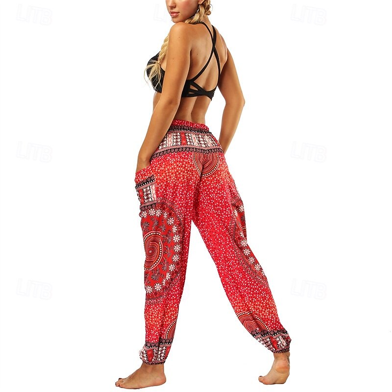 Retro Vintage Boho 1970s Harem pants Yoga Pants Hippie Smocked Waist Mandala Tribal Fancy Dress Women's Halloween Carnival Beach Vacation Wear Retro Theme Party Festival Adults' Pants 25