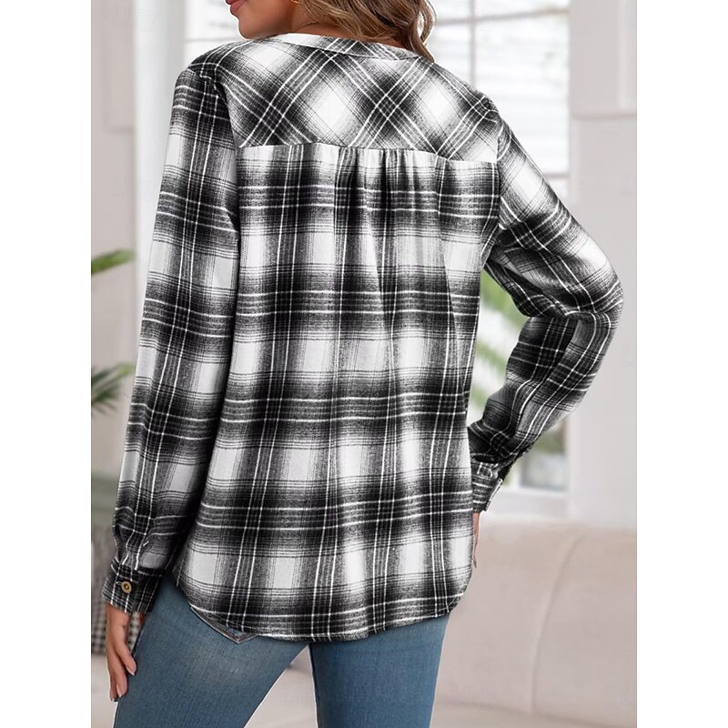 This Women's Casual Jacket Shacket cozy Breathable Pocket Buttons Print Casual Plaid Vacation Street Casual Daily Wear Single Breasted Regular Turndown Regular Fit Long Sleeve Outerwear Black Blue combines elegant design with practical functionality. Every detail has been carefully considered to ensure you get the best possible experience. The first-class construction means this product will serve you well for years to come.