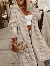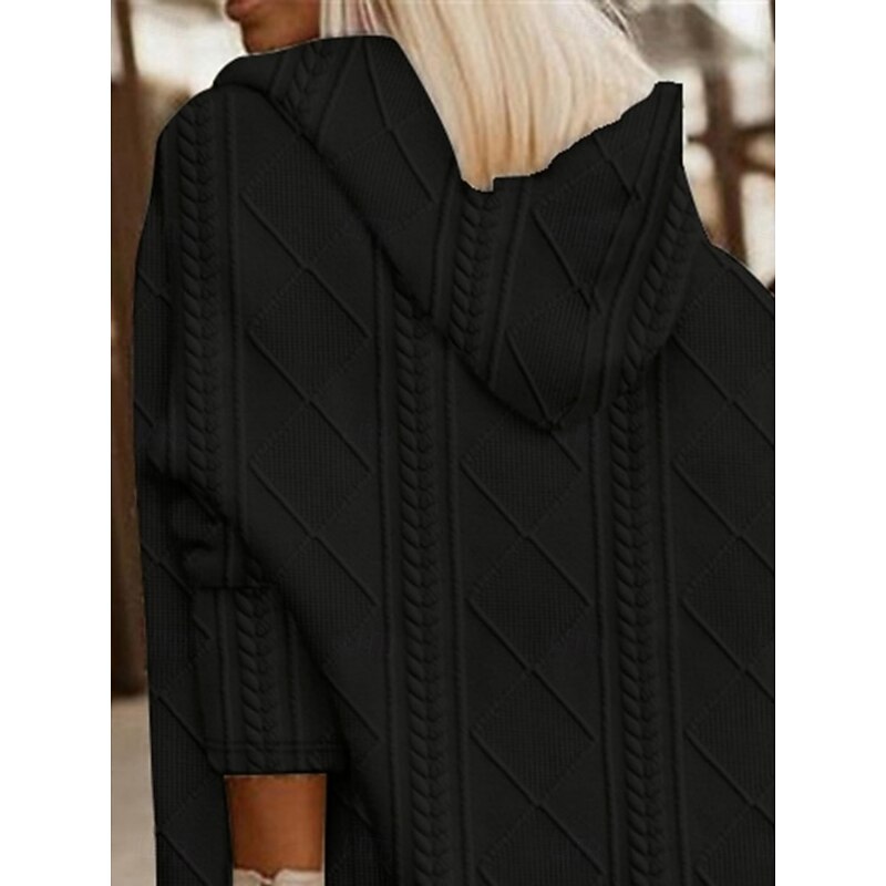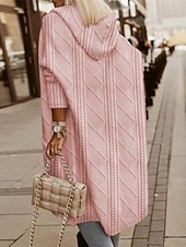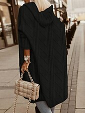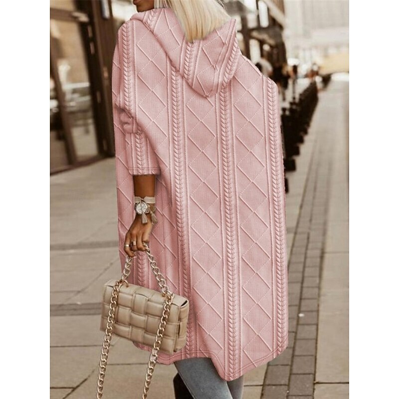 More information about Women's Winter Coat Hoodie Jacket Comfortable Breathable Buttons Open Front Fashion Casual Plain Vacation Street Casual Daily Wear Open Front Long Hooded Loose Fit Long Sleeve Outerwear Black Pink