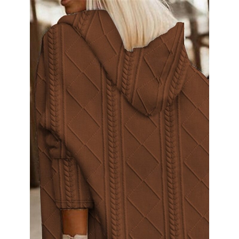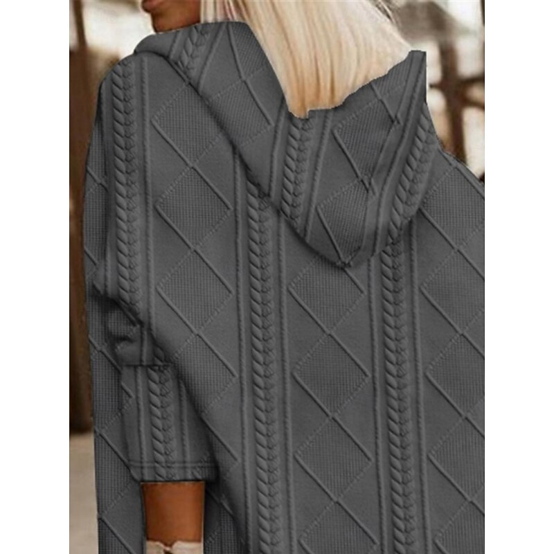 Women's Winter Coat Hoodie Jacket Comfortable Breathable Buttons Open Front Fashion Casual Plain Vacation Street Casual Daily Wear Open Front Long Hooded Loose Fit Long Sleeve Outerwear Black Pink 17