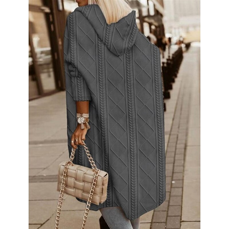 HOT ! Women's Winter Coat Hoodie Jacket Comfortable Breathable Buttons Open Front Fashion Casual Plain Vacation Street Casual Daily Wear Open Front Long Hooded Loose Fit Long Sleeve Outerwear Black Pink