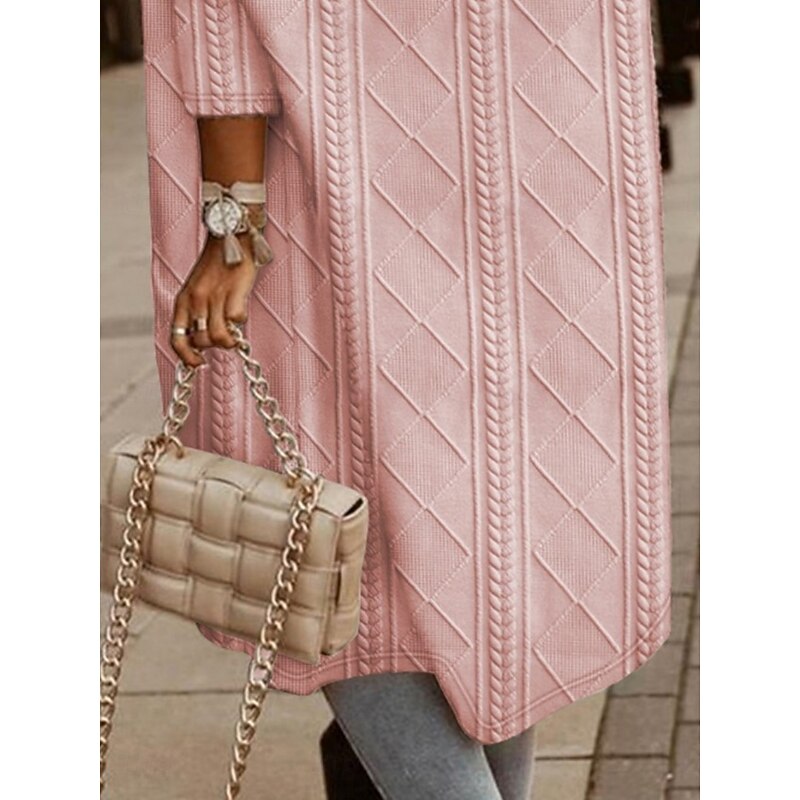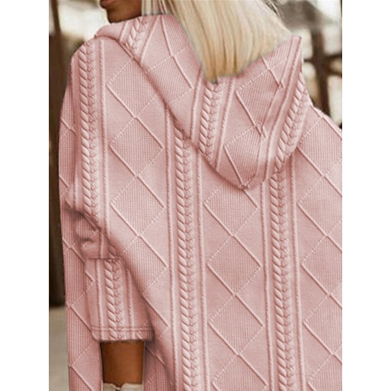 Women's Winter Coat Hoodie Jacket Comfortable Breathable Buttons Open Front Fashion Casual Plain Vacation Street Casual Daily Wear Open Front Long Hooded Loose Fit Long Sleeve Outerwear Black Pink 8