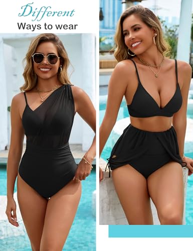 • Feature: The swim suits for women 2025 features mesh splicing and adjustable shoulder straps, comes with a separate bikini top inside, allowing it to be worn as a twouit your favorite bikini top.The ruched design on the abdomen has a slimming and tummy control effect.