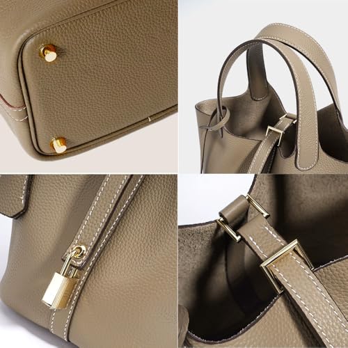 Trumpet Women's Handbag, Genuine Leather Lock Design Bucket Bag Vegetable Basket, Leather Lychee Pattern2025 6