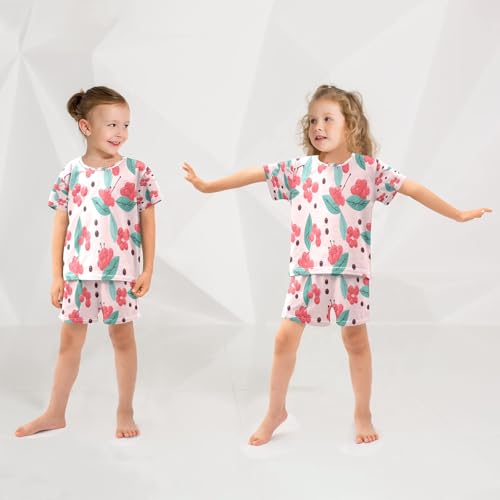 Red Fruit Kids Pjs Set Boys Girls Summer Short-Sleeve Sleepwear Pajamas 2PCS 4