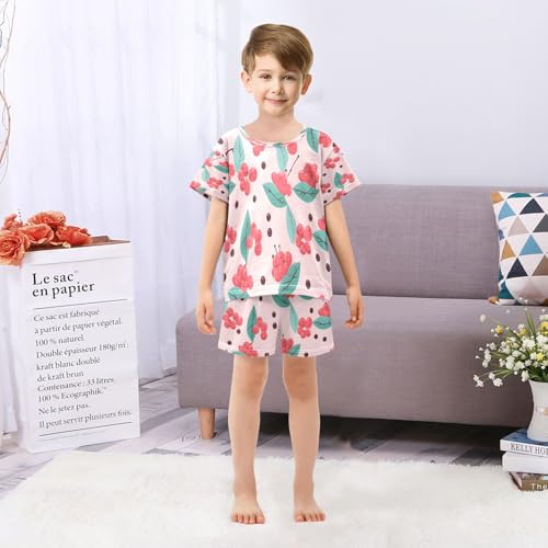 Red Fruit Kids Pjs Set Boys Girls Summer Short-Sleeve Sleepwear Pajamas 2PCS 5