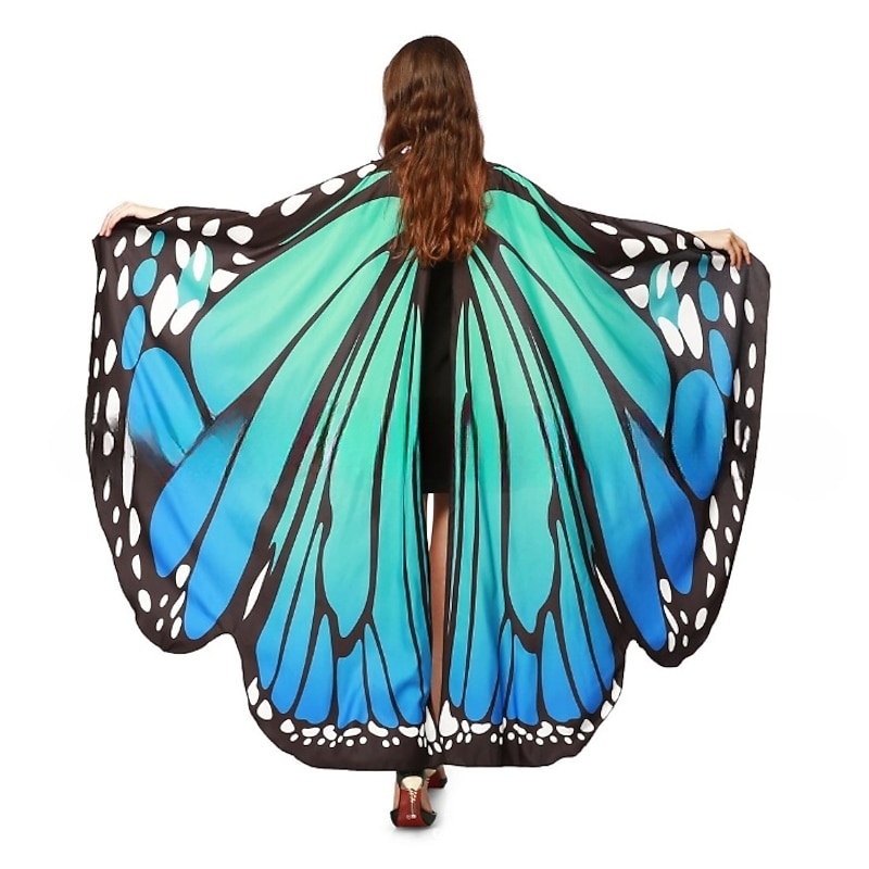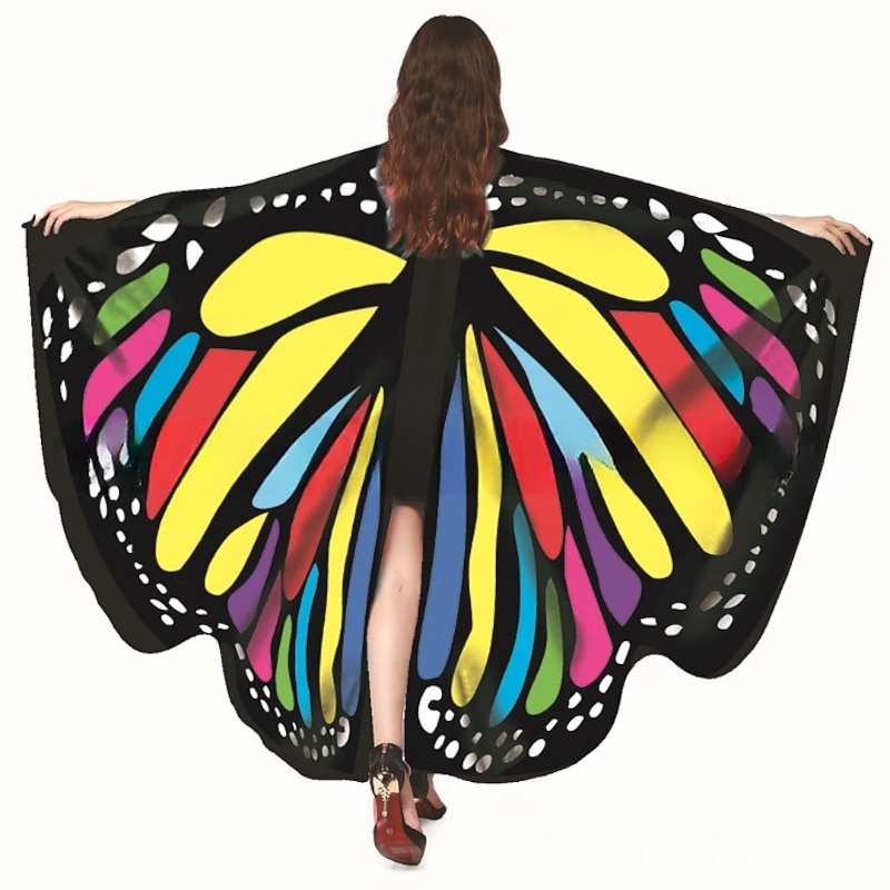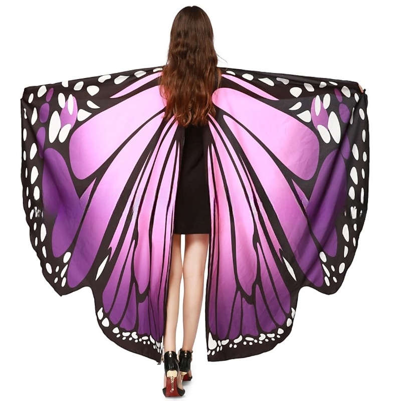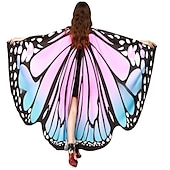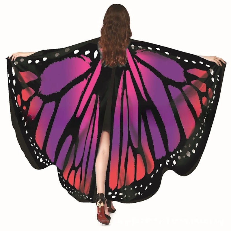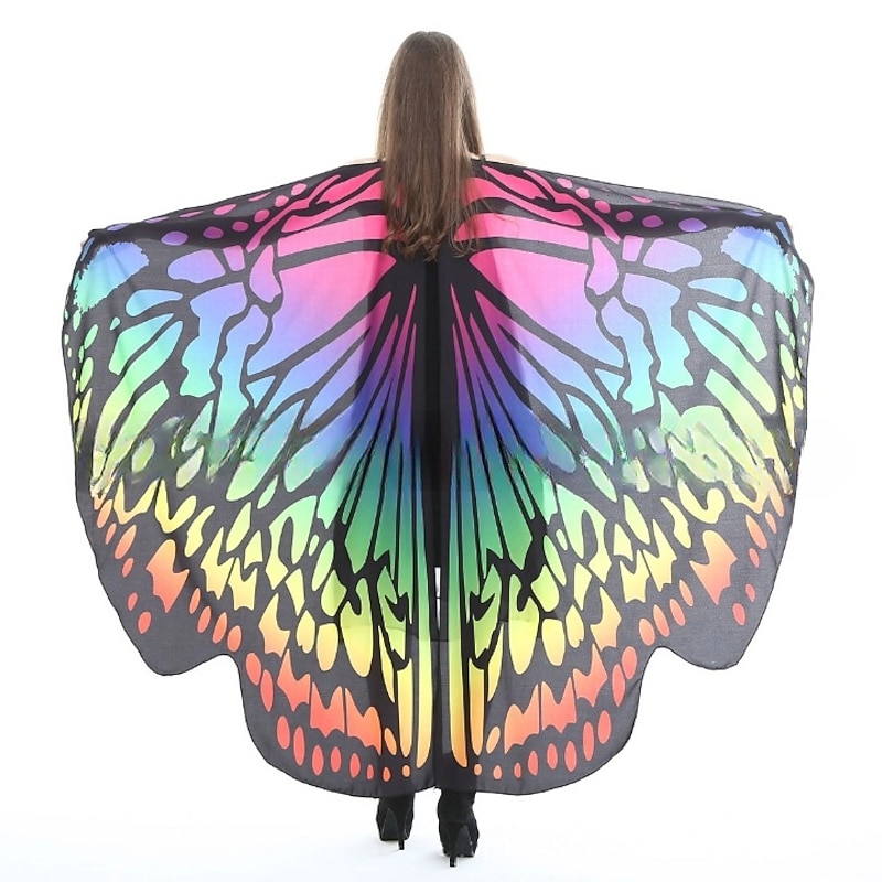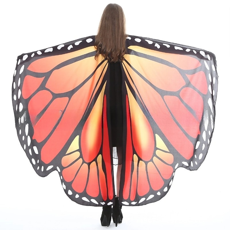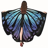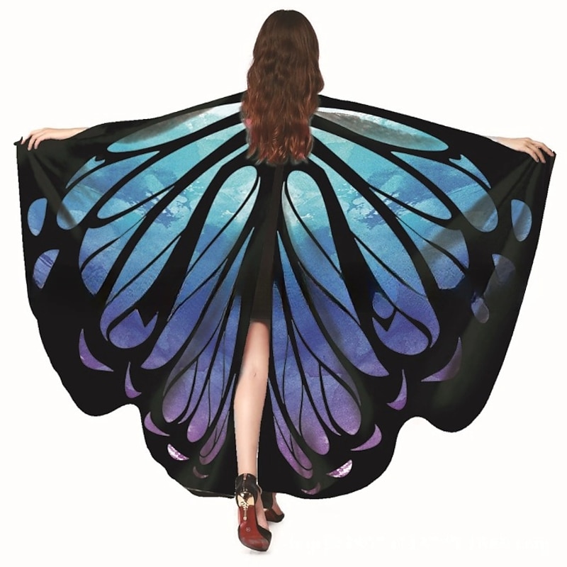 Highlights [Fabric] : The Fairytale Butterfly Carnival Costume is crafted from lightweight and sheer polyester, which ensures easy movement and a delicate drape. This material is perfect for creating a fluid and eye-catching appearance, capturing the essence of natural butterfly wings. [Fit] : This costume features a versatile and flowy open style, designed as a shawl that can be draped effortlessly over your shoulders. It is built for comfort and ease, allowing freedom of movement while maintaining a striking silhouette. [Design Highlights] : The vibrant butterfly wing shawl showcases an intricate design with vivid gradient hues, transitioning smoothly from one shade to another. The detailed bold black outlines resemble butterfly veins, adding realism and elegance. The accompanying mask enhances the whimsical and festive theme, perfect for standing out at any event. [Occasions] : Ideal for costume parties, festivals, Christmas celebrations, and carnival events, this costume set adds a touch of elegance and whimsy to any gathering. Whether you're aiming for a fairytale look or simply want to make a statement, this ensemble is versatile for various festive occasions. [Size] : This costume is available in one size, designed to fit most adults comfortably. It includes both the wings and mask as part of the set, ensuring a complete look for your next carnival or party event.