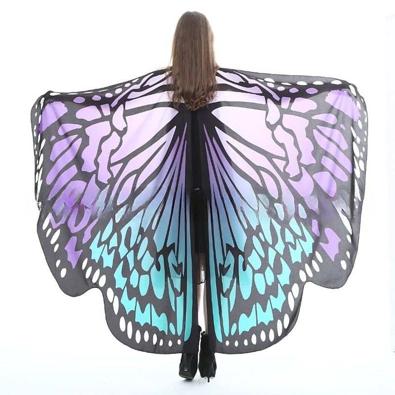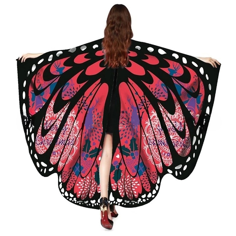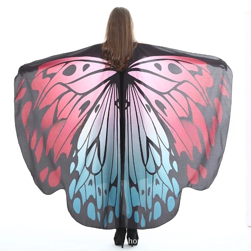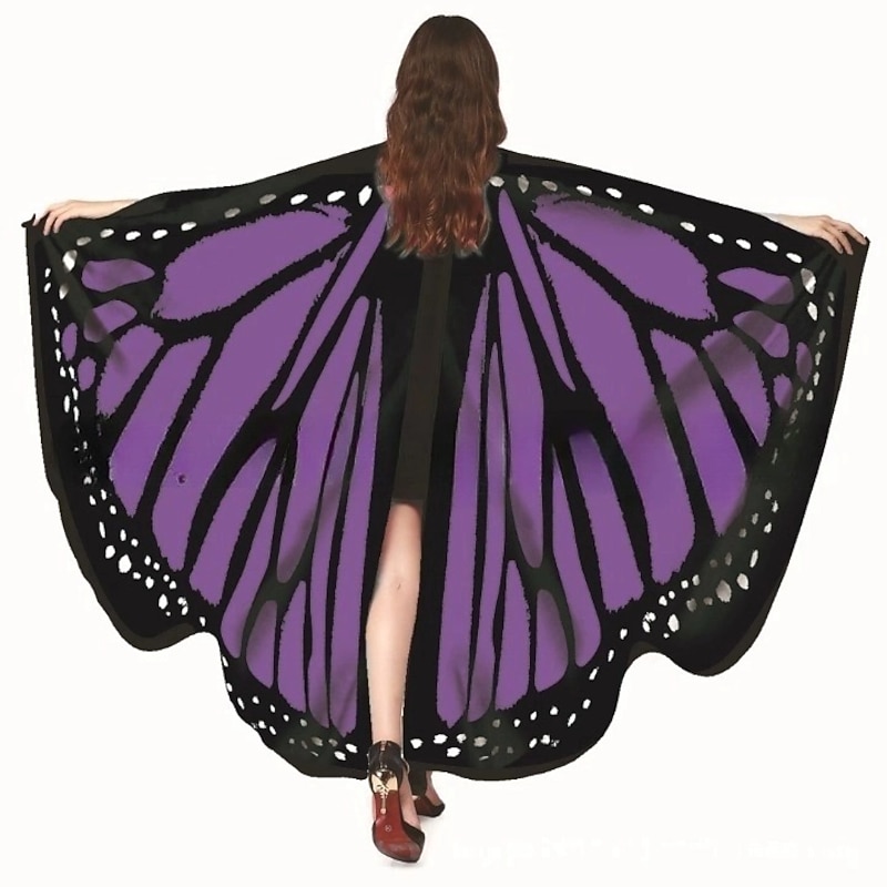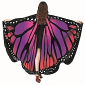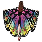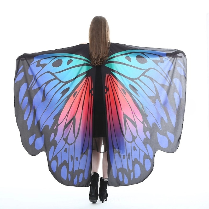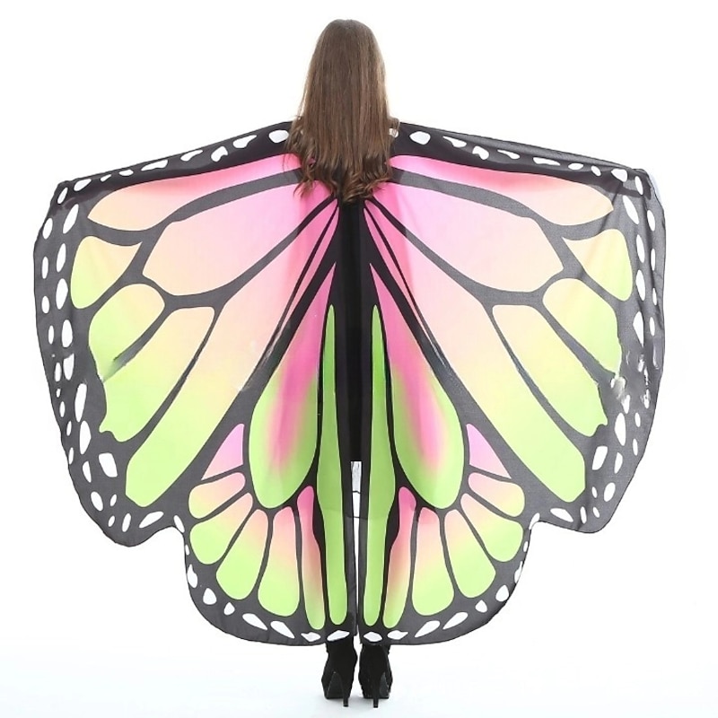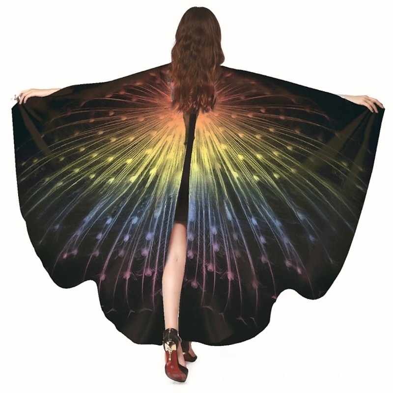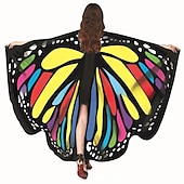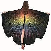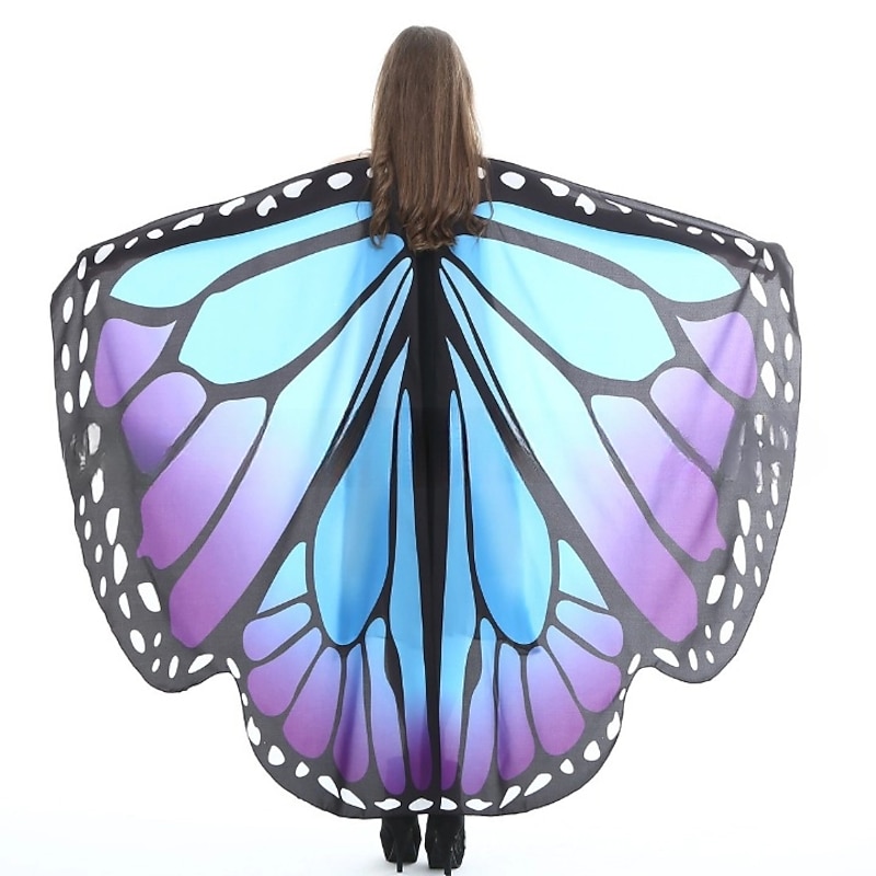 Highlights [Fabric] : The Fairytale Butterfly Carnival Costume is crafted from lightweight and sheer polyester, which ensures easy movement and a delicate drape. This material is perfect for creating a fluid and eye-catching appearance, capturing the essence of natural butterfly wings. [Fit] : This costume features a versatile and flowy open style, designed as a shawl that can be draped effortlessly over your shoulders. It is built for comfort and ease, allowing freedom of movement while maintaining a striking silhouette. [Design Highlights] : The vibrant butterfly wing shawl showcases an intricate design with vivid gradient hues, transitioning smoothly from one shade to another. The detailed bold black outlines resemble butterfly veins, adding realism and elegance. The accompanying mask enhances the whimsical and festive theme, perfect for standing out at any event. [Occasions] : Ideal for costume parties, festivals, Christmas celebrations, and carnival events, this costume set adds a touch of elegance and whimsy to any gathering. Whether you're aiming for a fairytale look or simply want to make a statement, this ensemble is versatile for various festive occasions. [Size] : This costume is available in one size, designed to fit most adults comfortably. It includes both the wings and mask as part of the set, ensuring a complete look for your next carnival or party event.