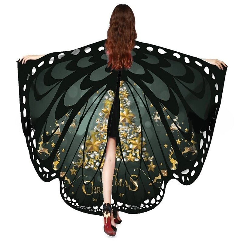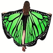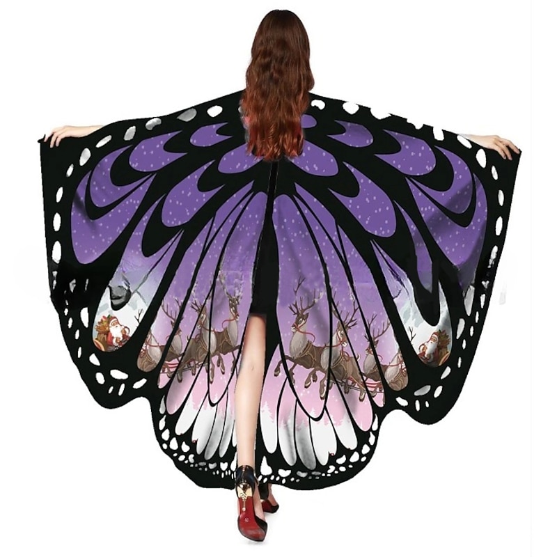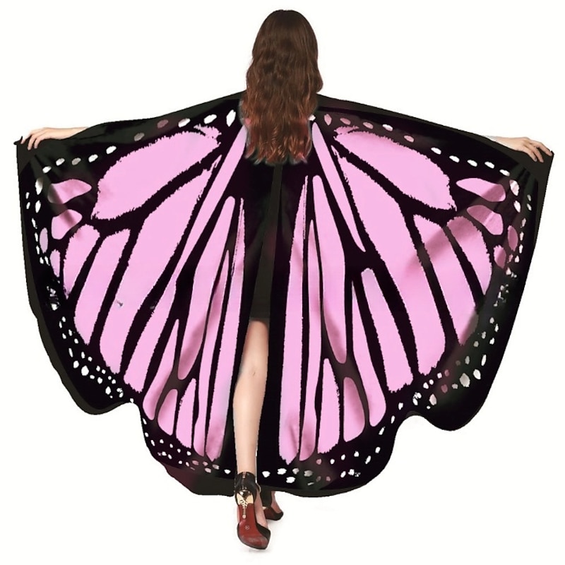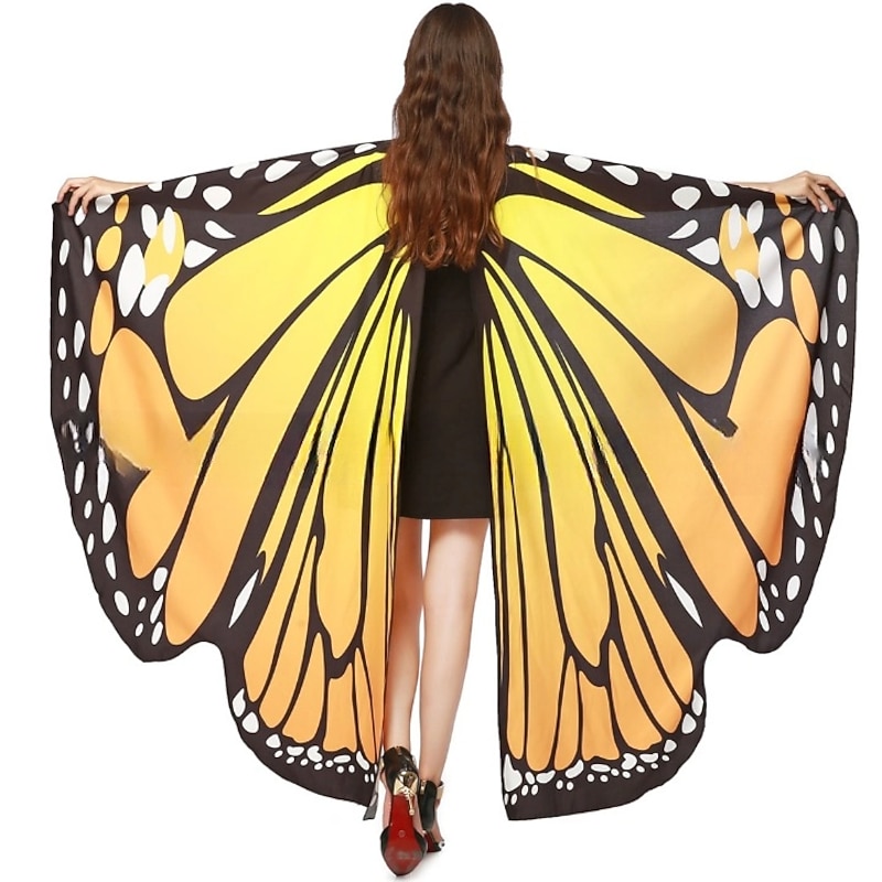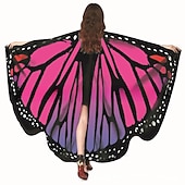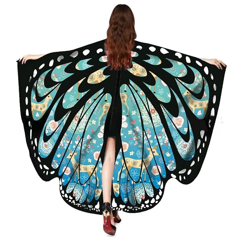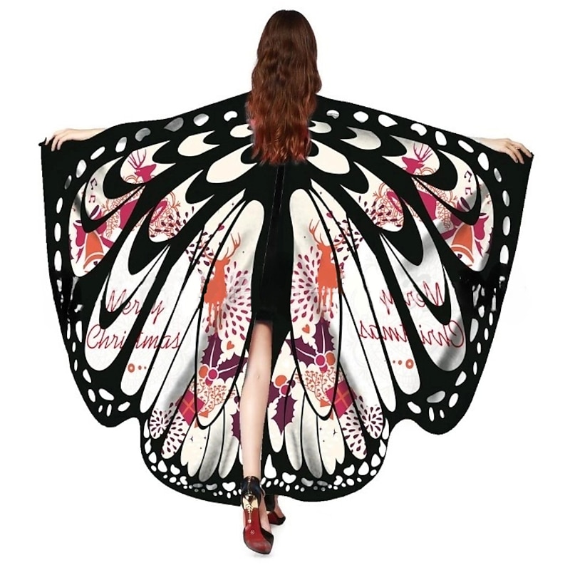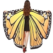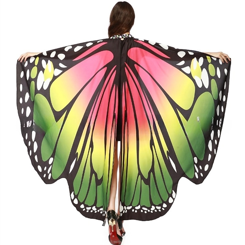 Highlights [Fabric] : The Fairytale Butterfly Carnival Costume is crafted from lightweight and sheer polyester, which ensures easy movement and a delicate drape. This material is perfect for creating a fluid and eye-catching appearance, capturing the essence of natural butterfly wings. [Fit] : This costume features a versatile and flowy open style, designed as a shawl that can be draped effortlessly over your shoulders. It is built for comfort and ease, allowing freedom of movement while maintaining a striking silhouette. [Design Highlights] : The vibrant butterfly wing shawl showcases an intricate design with vivid gradient hues, transitioning smoothly from one shade to another. The detailed bold black outlines resemble butterfly veins, adding realism and elegance. The accompanying mask enhances the whimsical and festive theme, perfect for standing out at any event. [Occasions] : Ideal for costume parties, festivals, Christmas celebrations, and carnival events, this costume set adds a touch of elegance and whimsy to any gathering. Whether you're aiming for a fairytale look or simply want to make a statement, this ensemble is versatile for various festive occasions. [Size] : This costume is available in one size, designed to fit most adults comfortably. It includes both the wings and mask as part of the set, ensuring a complete look for your next carnival or party event.