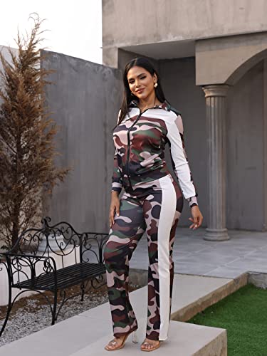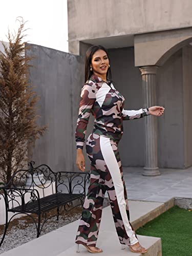Adogirl Womens Two Piece Outfits Zipper Up Pattern Print Long Sleeve Jogging Weat Suits Matching Jogger Long Pants Set